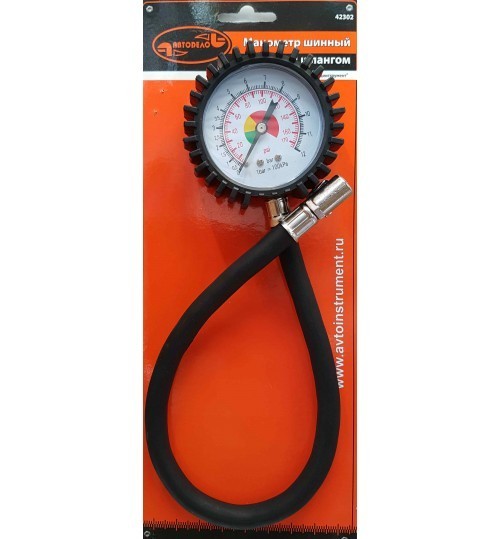 Манометр для шин с насадкой и шлангом 10 атм. АвтоDело 42302
